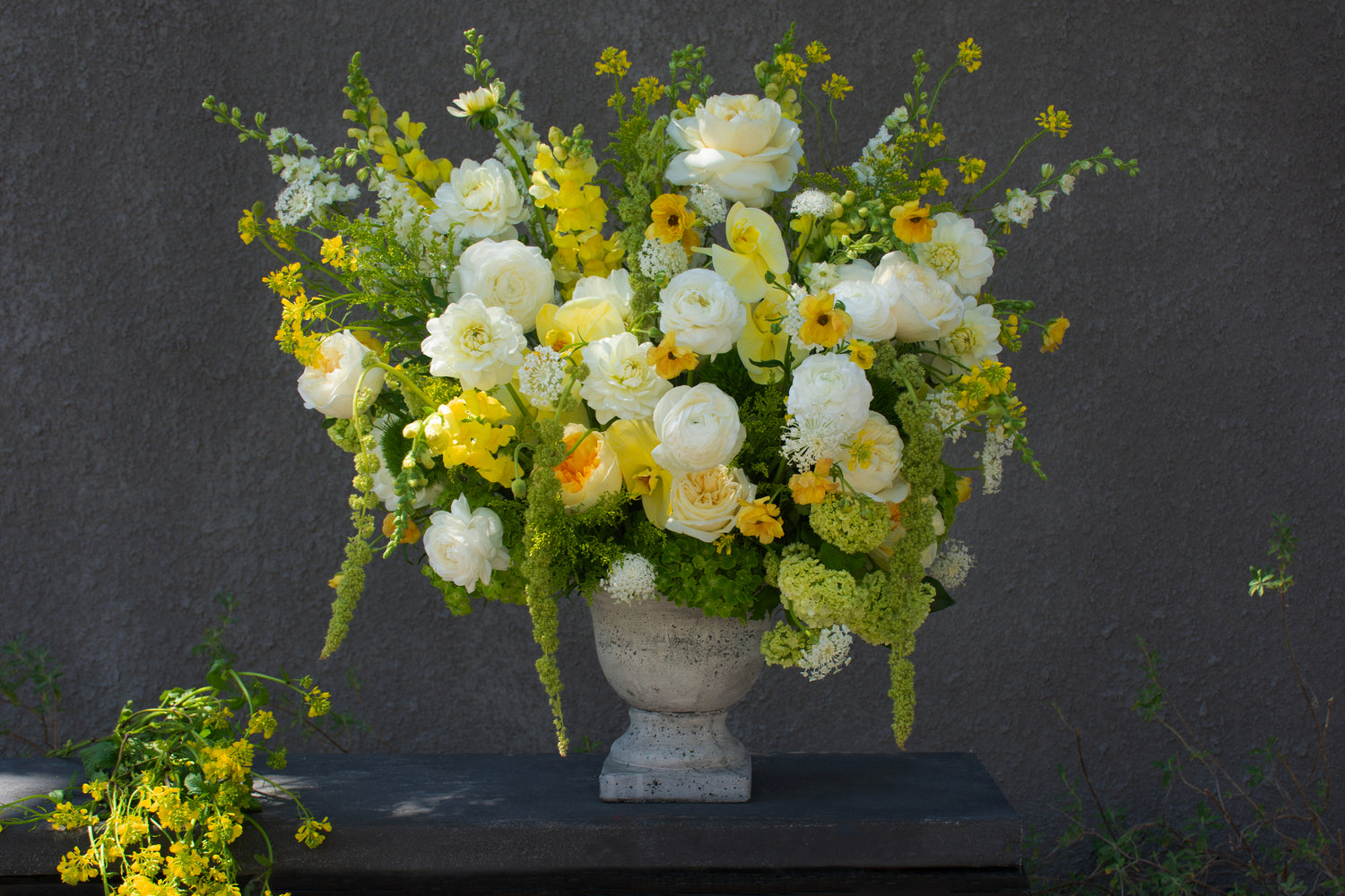 Our work has been sought after by designers, brands, and artists who operate at the highest level. Private events for Jonathan Simkhai and Saks Fifth Avenue have featured our floral installations. Cultural moments — like Taylor Swift’s now-iconic floral Instagram post — have passed through our hands. Collaborations with clients such as Kanye West and James Corden have given rise to floral sculptures that feel more like performance art than design.
