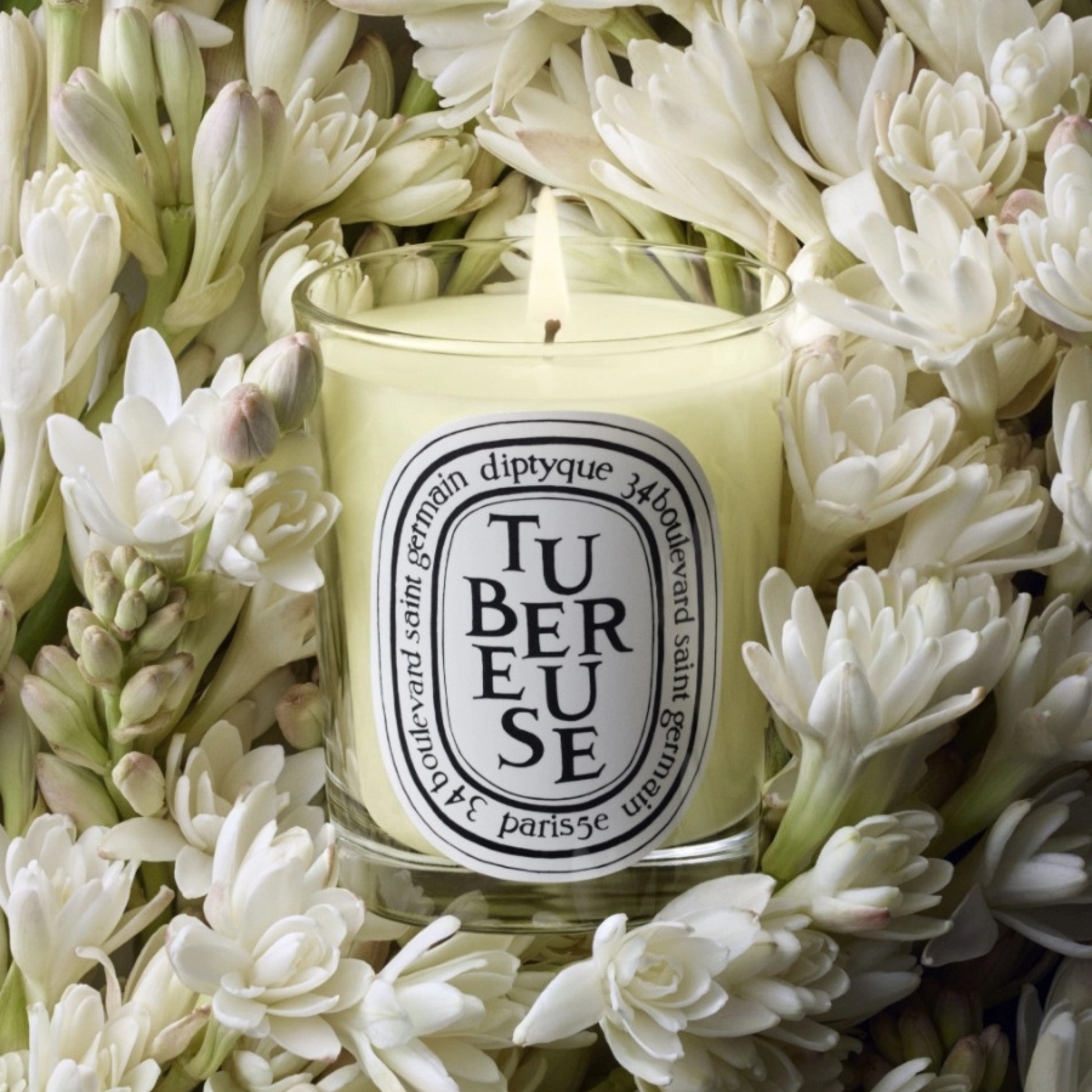 Once lit, this candle invites the imagination to roam and explore the wide fields of Southern India where this delicate white flower is cultivated.