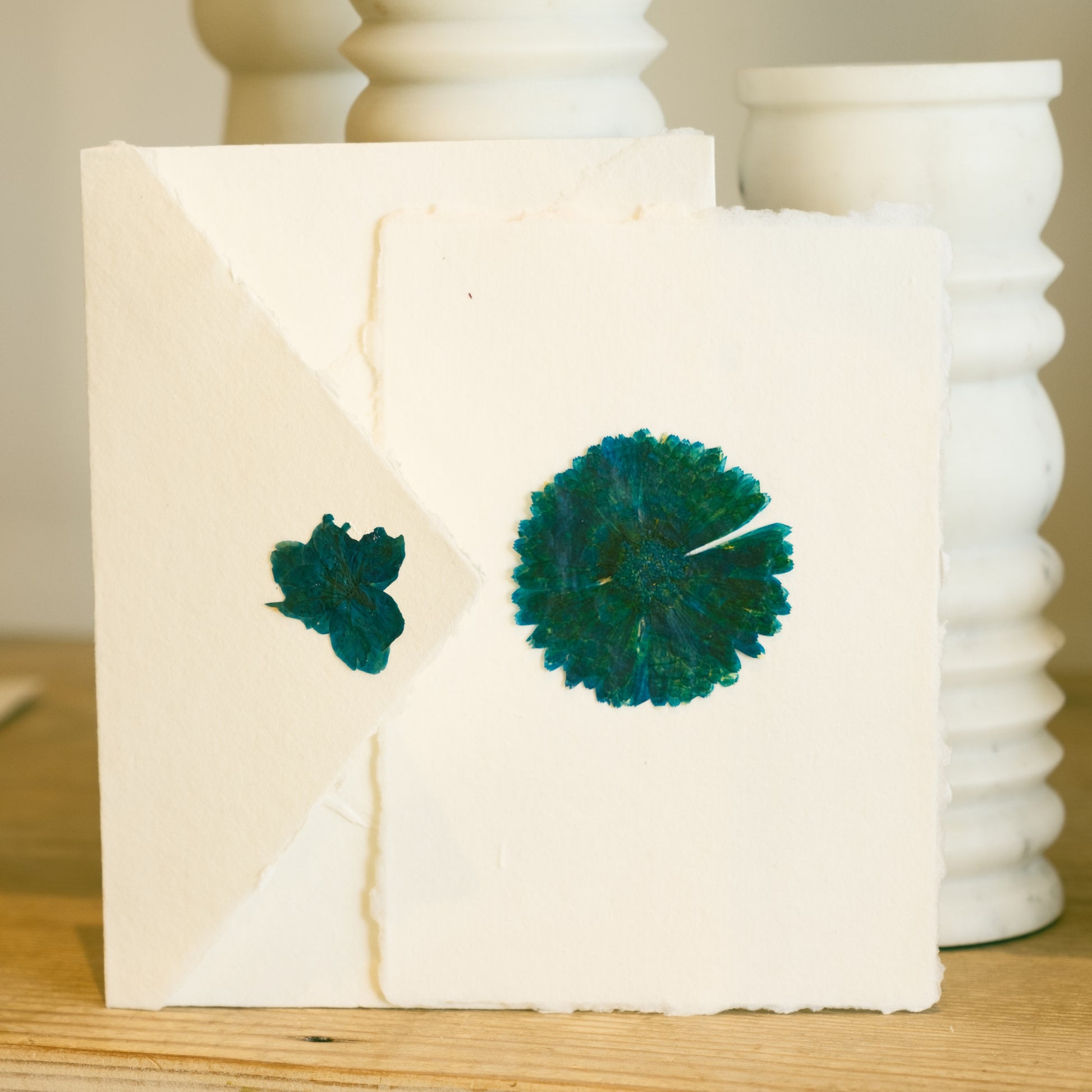 Share your emotions with the power of flowers. These greeting cards add a poetic touch with real pressed flowers. Each card is created in our Los Angeles store using hand-made cotton paper. Cards include an envelope embossed with our Empty Vase logo, and a golden sticker to seal the envelope.