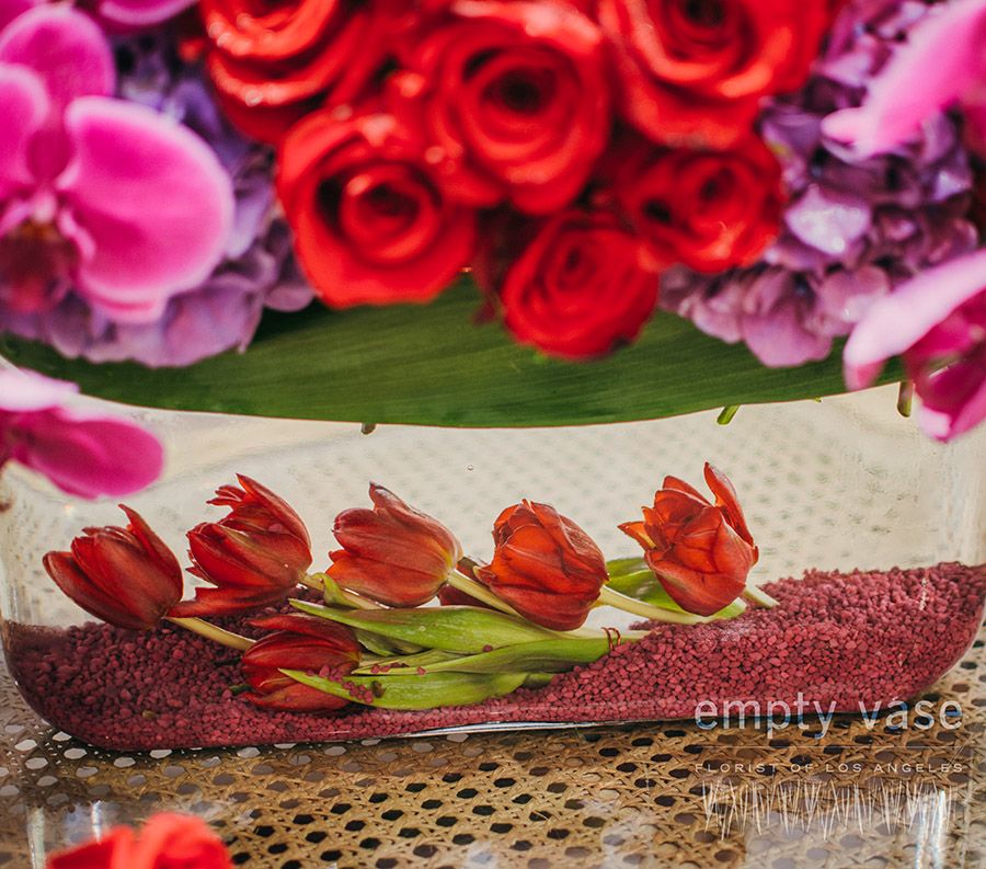Anemones, Hydrangea, Orchid, Phalaenopsis Orchid, Ranunculus, Red, Rose, Tulip