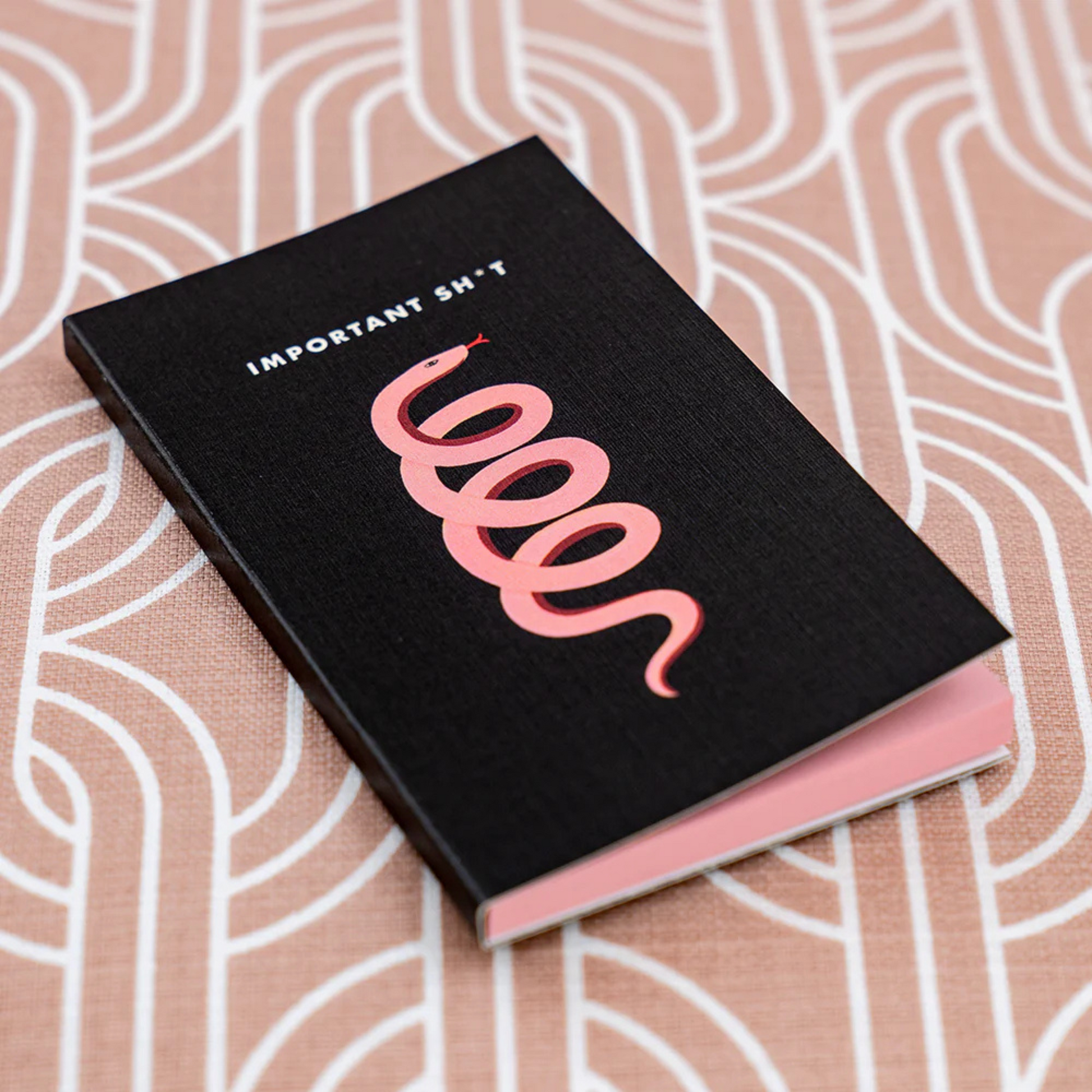 Snake covered mini notepad, to keep track of all your important sh*t.