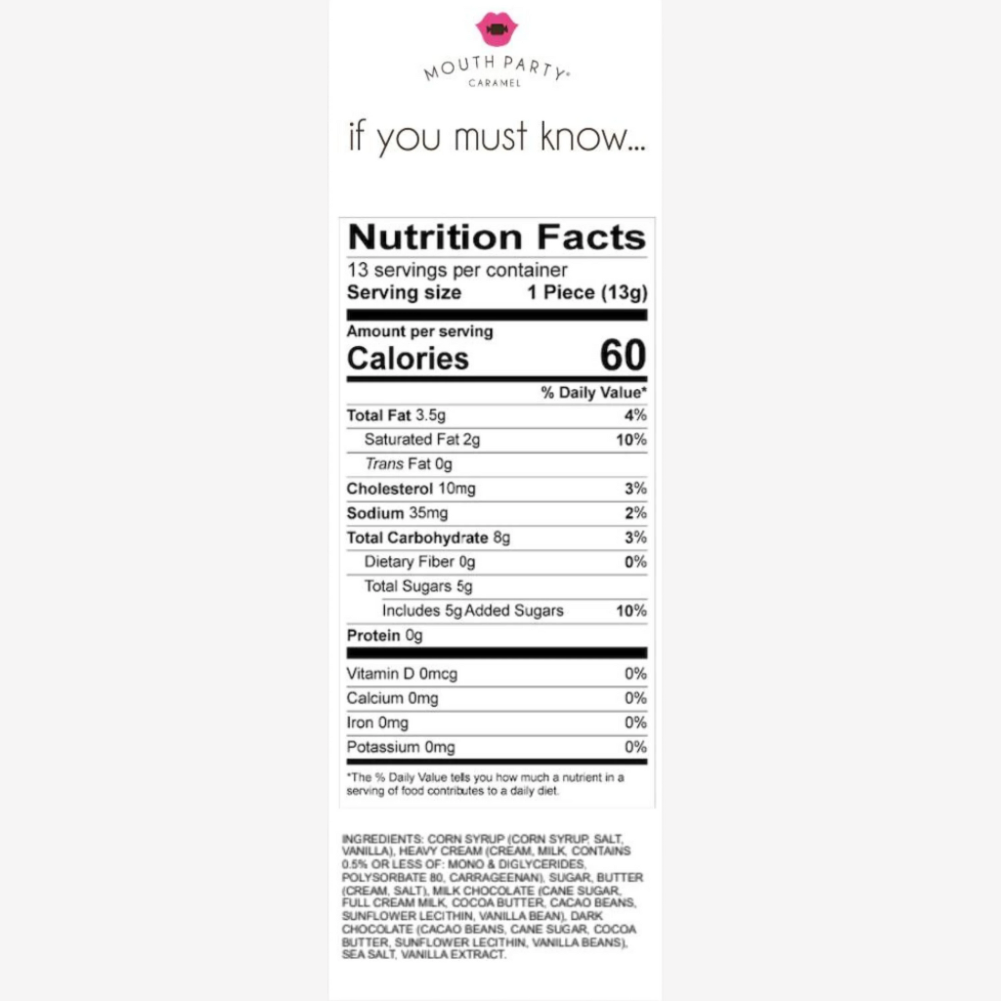 Gotta have it all? Of course you do…Mouth Party assorted packages include all five flavors: original, sea salt, chesapeake, chocolate sea salt, and OMG! caramels.