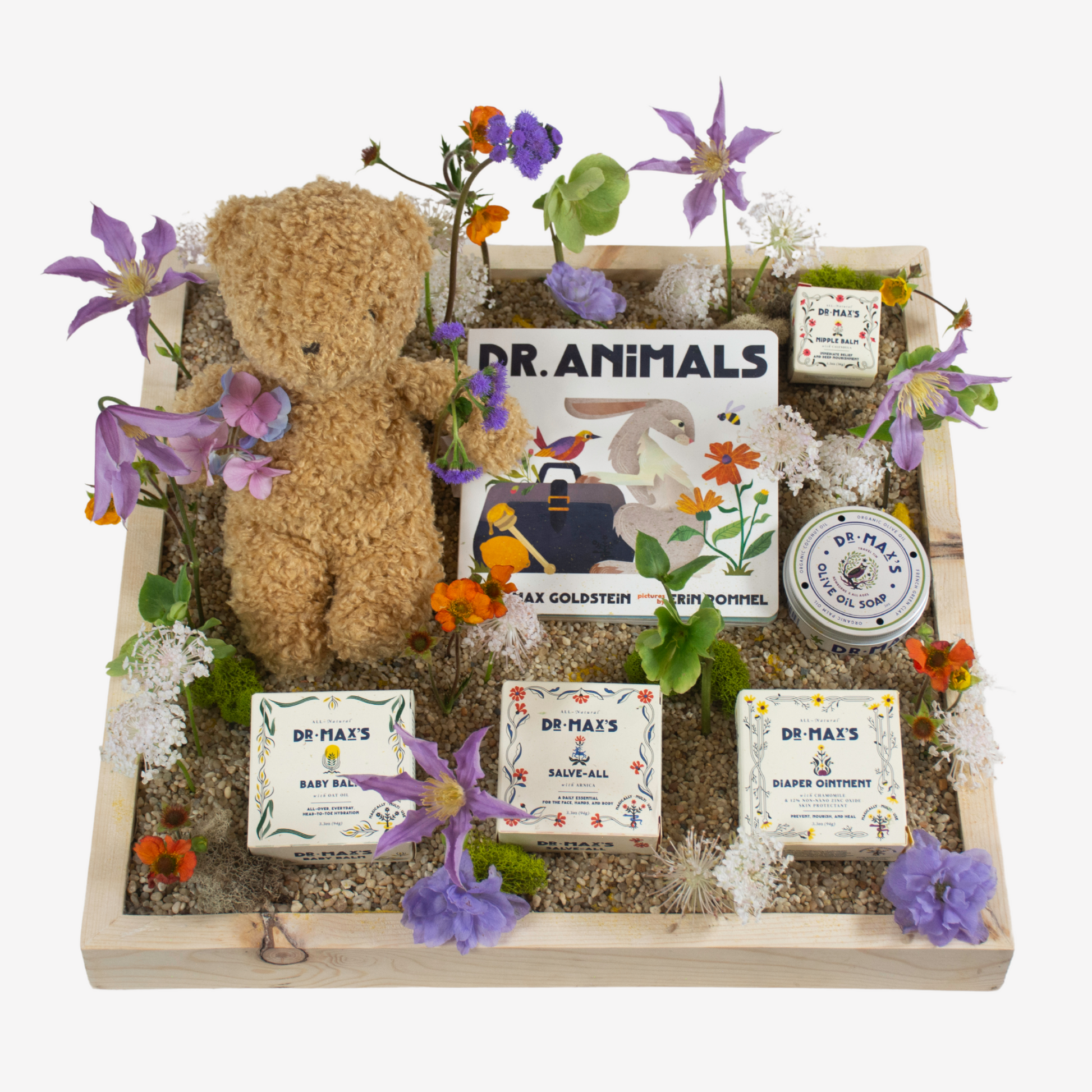 Celebrate new parents and their little ones with our exclusive flower box featuring Dr. Max and the Alimrose Charlie Bear. This one-of-a-kind 'New Baby' Gift Box features essential skincare products for parents and babies alike, as well as Dr. Max's children's book, 'Dr. Animals,' and a plush, cuddly, Alimrose bear.