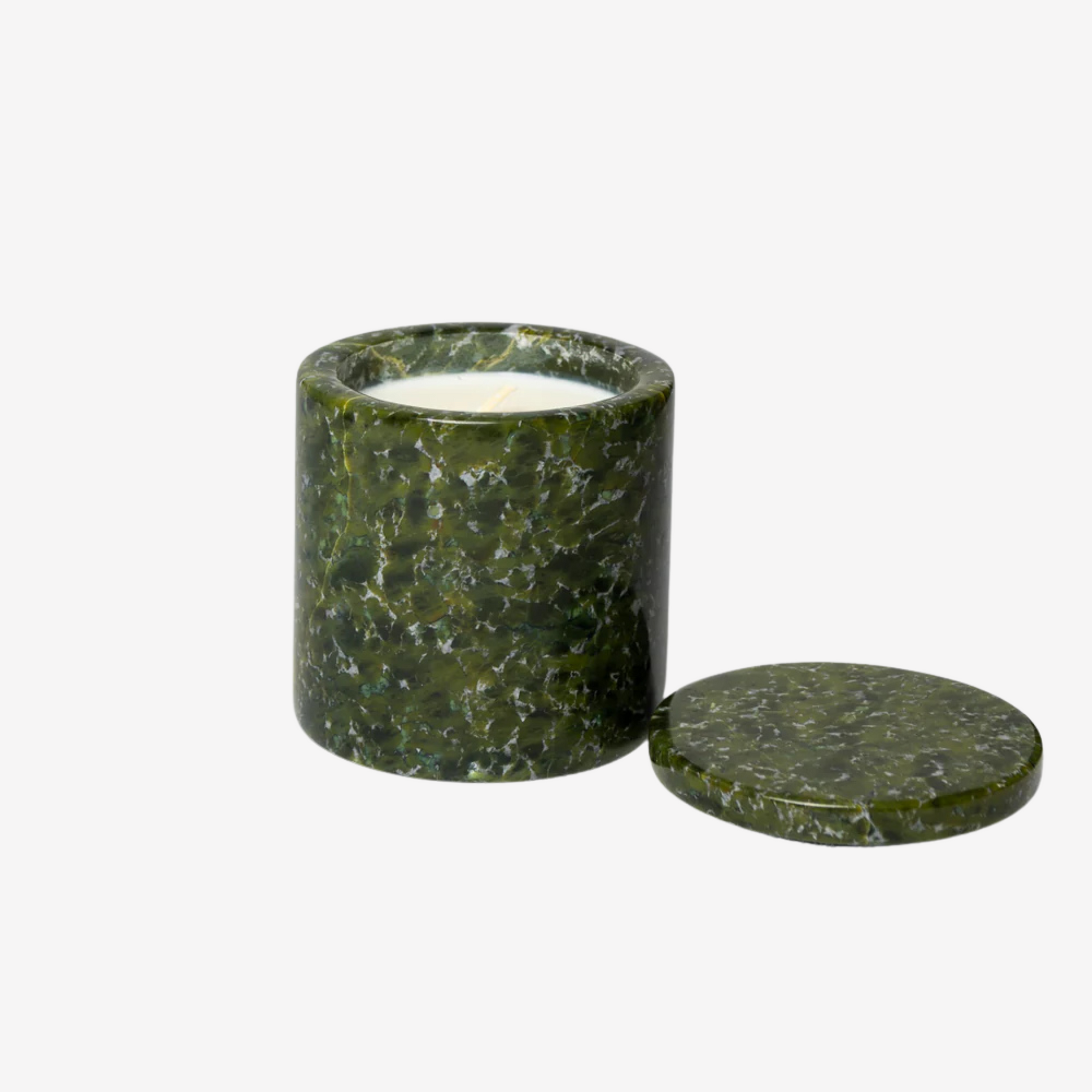 Incorporate timeless elegance into your abode with this stunning moss green marble tumbler candle that was hand selected for its stunning metamorphic color variance of soft moss to deep hunter hues that are displayed in a unique, natural pattern that can be added to a variety of decor themes.