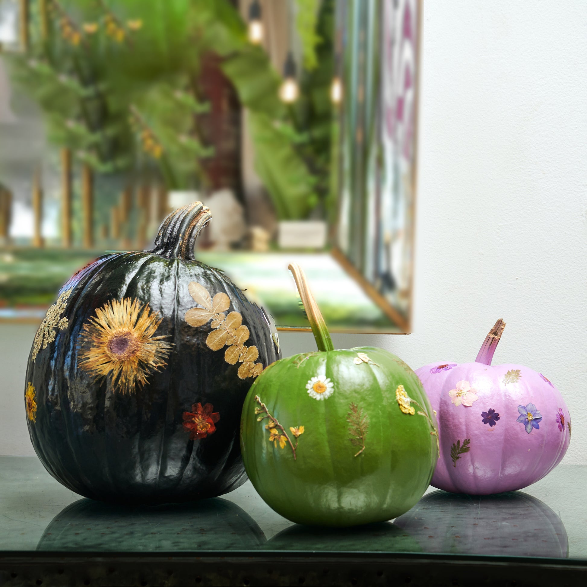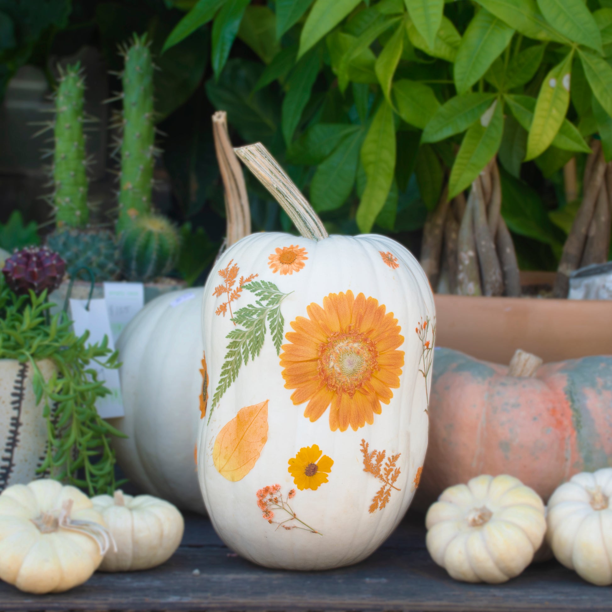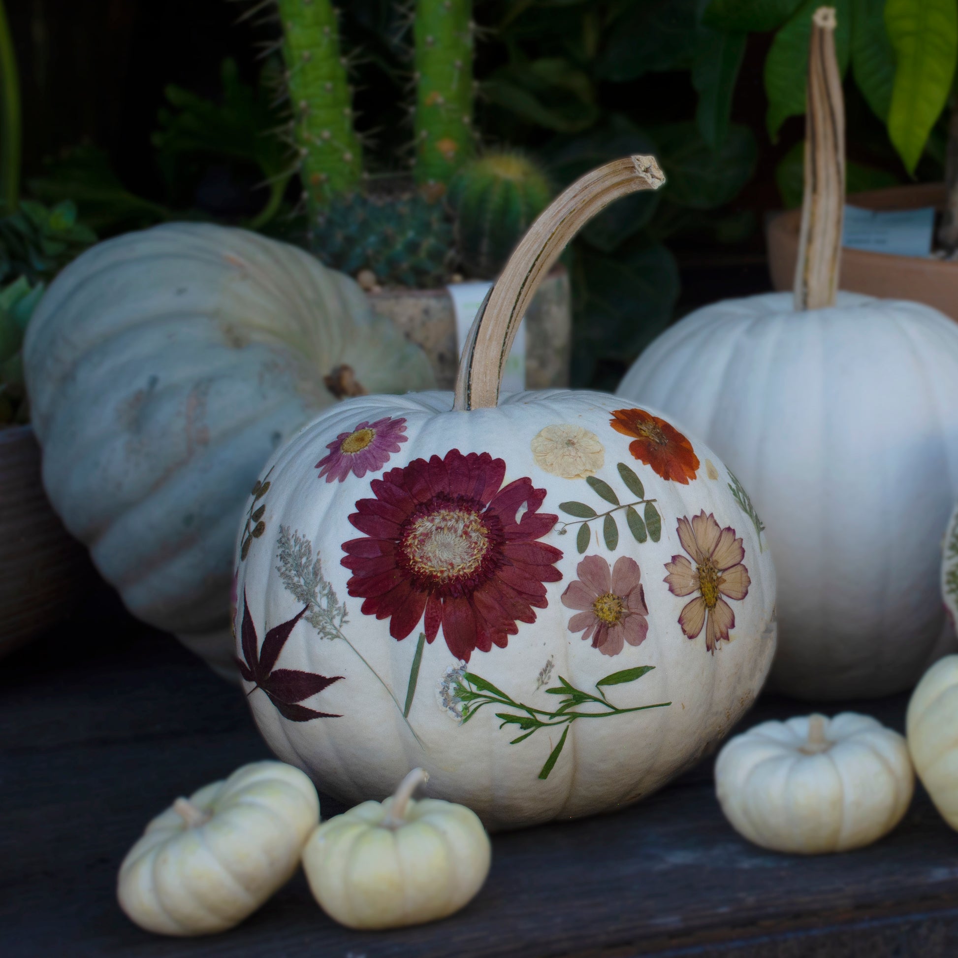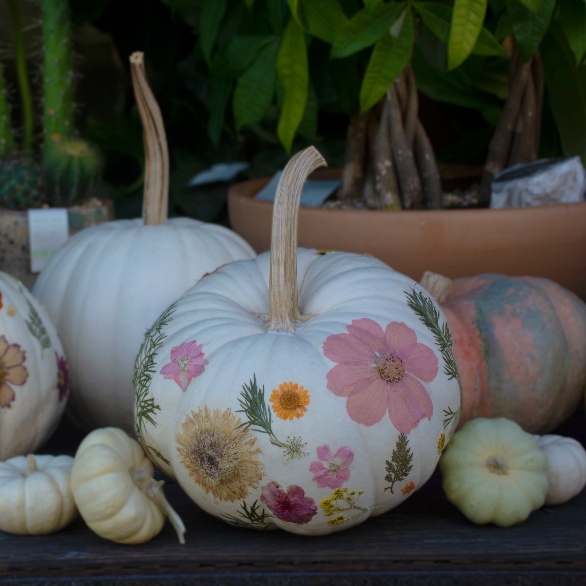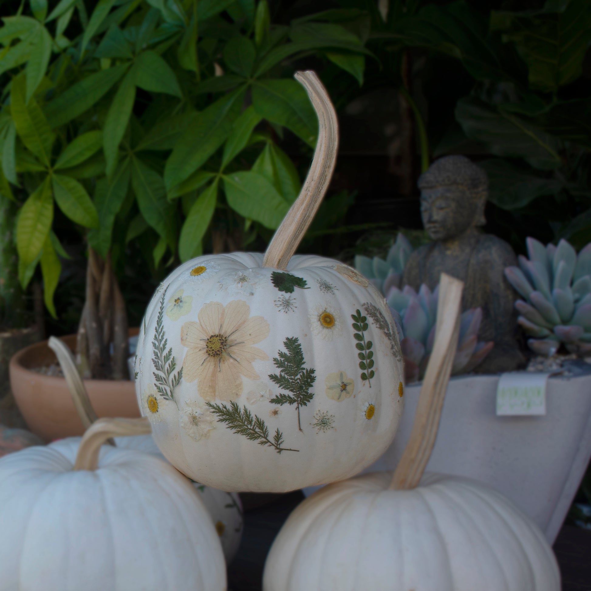 Add a touch of whimsy to your fall décor with our bespoke pressed flower pumpkins, designed to bring delicate charm to any space.