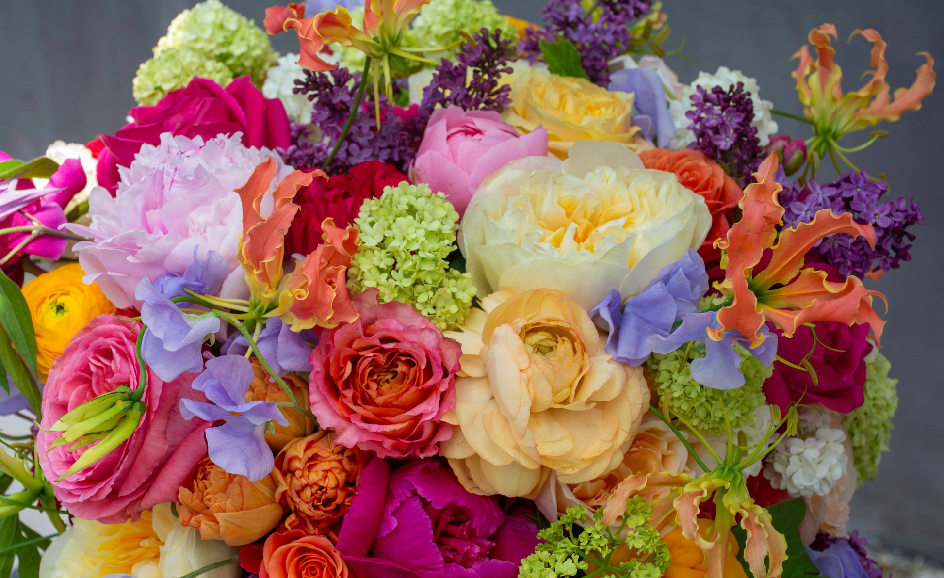 Rose, Vanda Orchid, Lilac, Viburnum, Gloriosa, Clematis, Ranunculus, Garden Roses, Sweet Peas