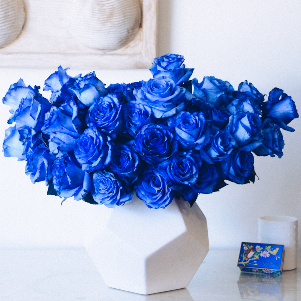 PLEASE NOTE: Blue roses are not regularly in stock and must be ordered in advance. Call us at (310) 278-1988 or email us at sales@emptyvase.com to find out if we have them in today or to place a future order.