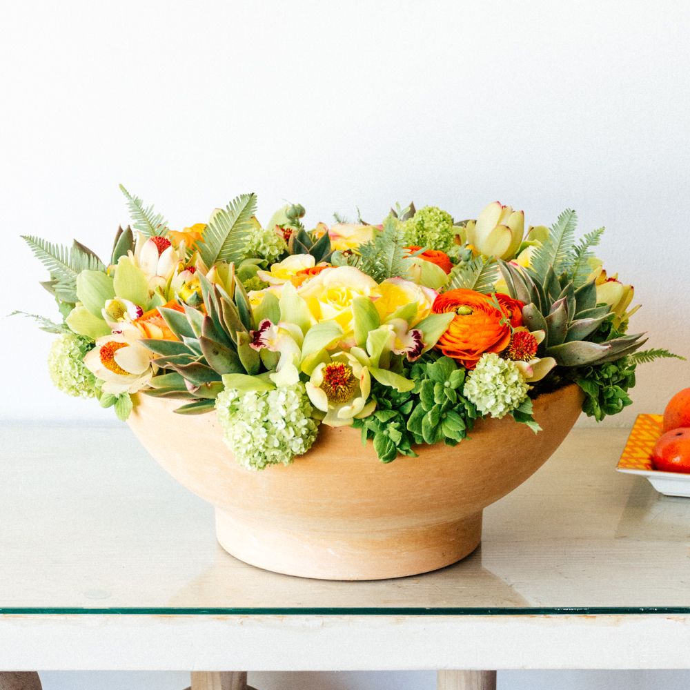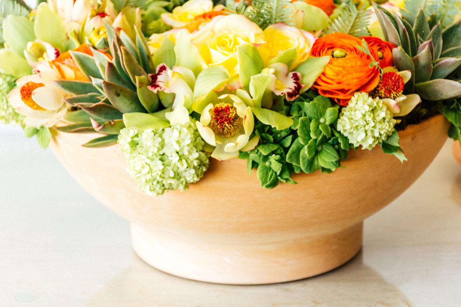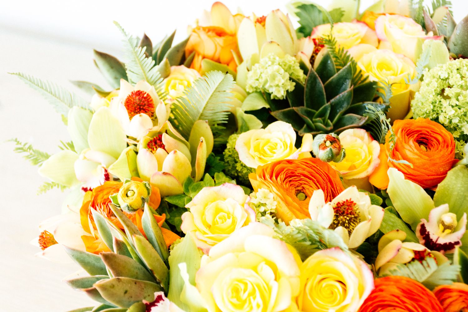 Cymbidium, Hydrangea, Protea, Ranunculus, Rose, Succulent, Sunset Safari Protea, Viburnum