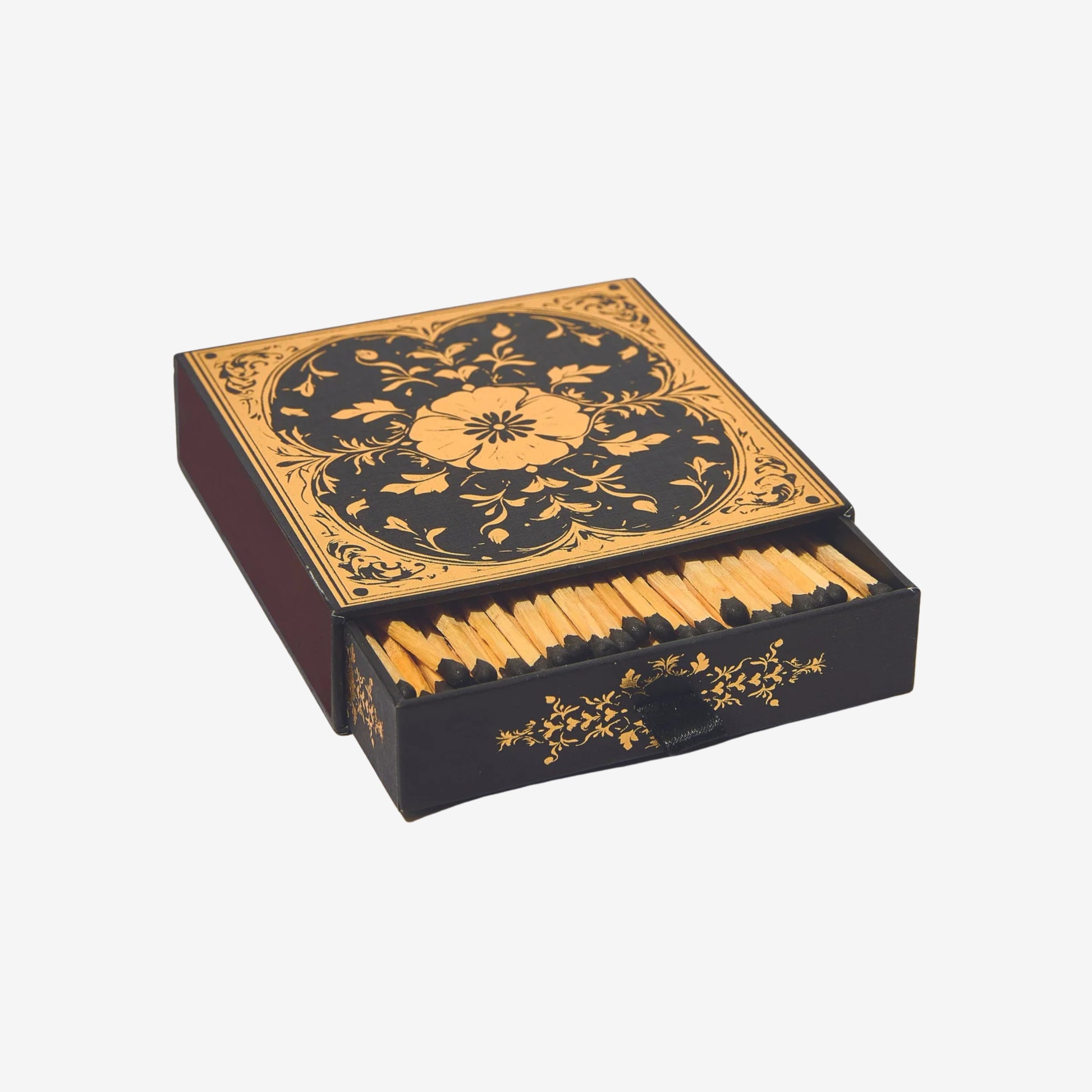Our Matchboxes are thoughtfully designed to elevate everyday match storage. Crafted from rigid paper with a linen-like texture and finished with a grosgrain ribbon, each box is adorned with intricate gold foil detailing, reflecting our dedication to artistry and quality. Perfect for a mantel, coffee table, or bedside, these match boxes also pair seamlessly with our iconic Match Cloches as a refill— bringing together form and function with effortless style.