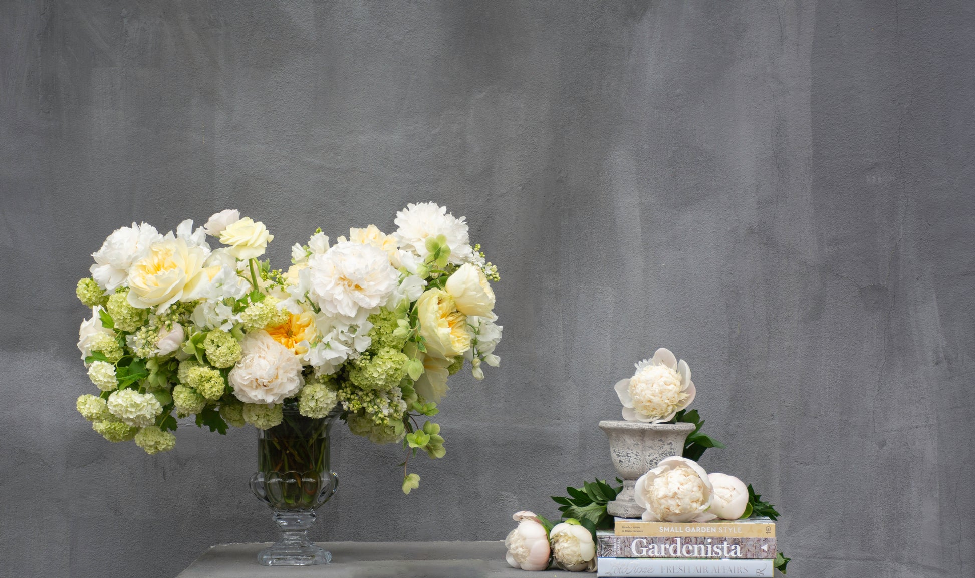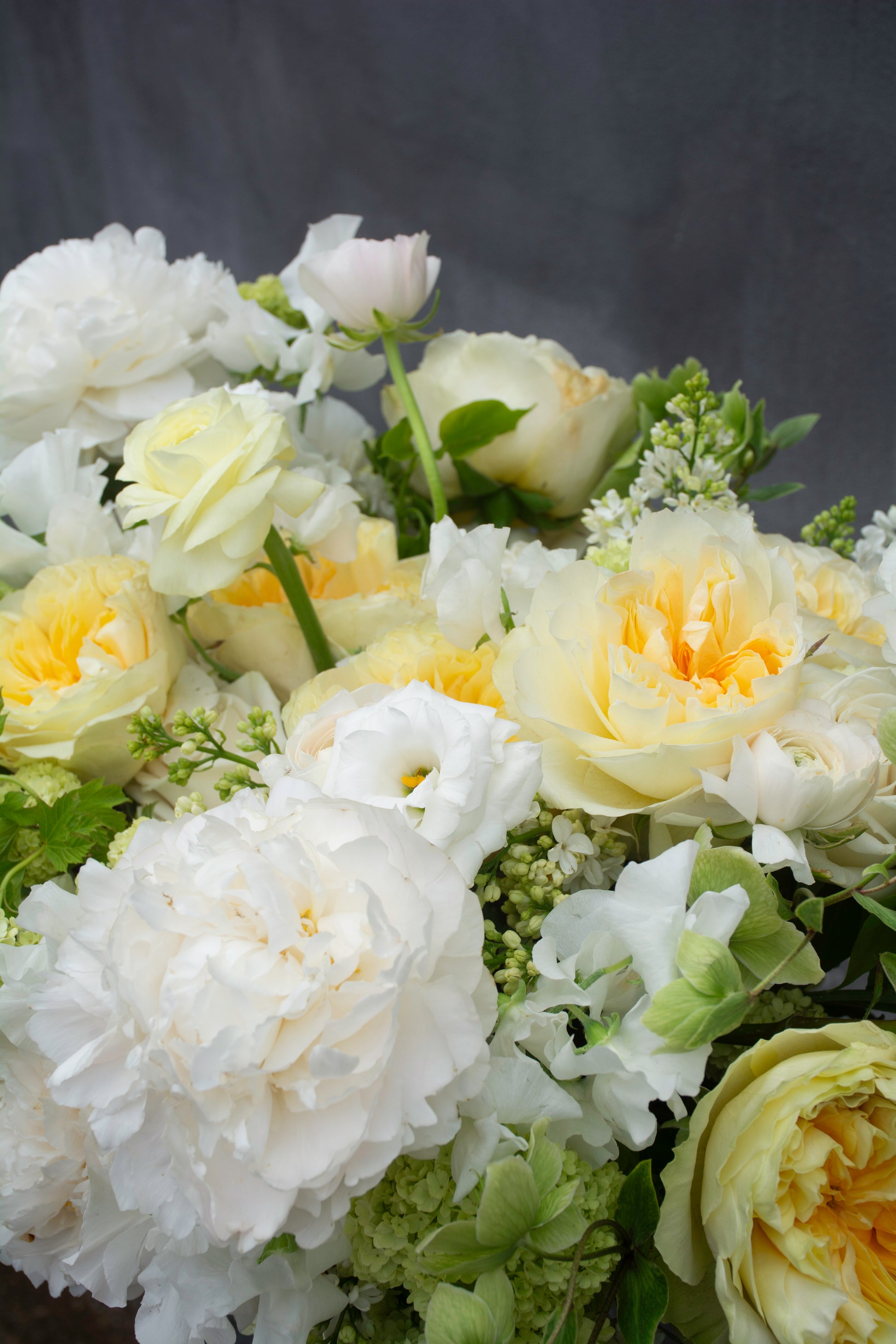 Peony, Garden Rose, Ranunculus, Lisianthus, Sweet Pea, Lilac, Viburnum