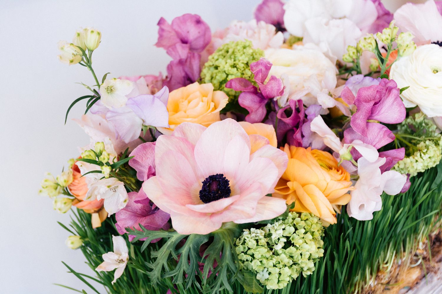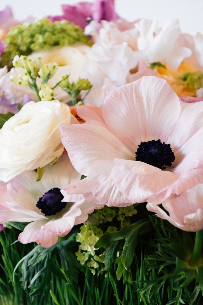 Anemones, Ranunculus, Rose, Soft Pink, Sweet Peas, Viburnum