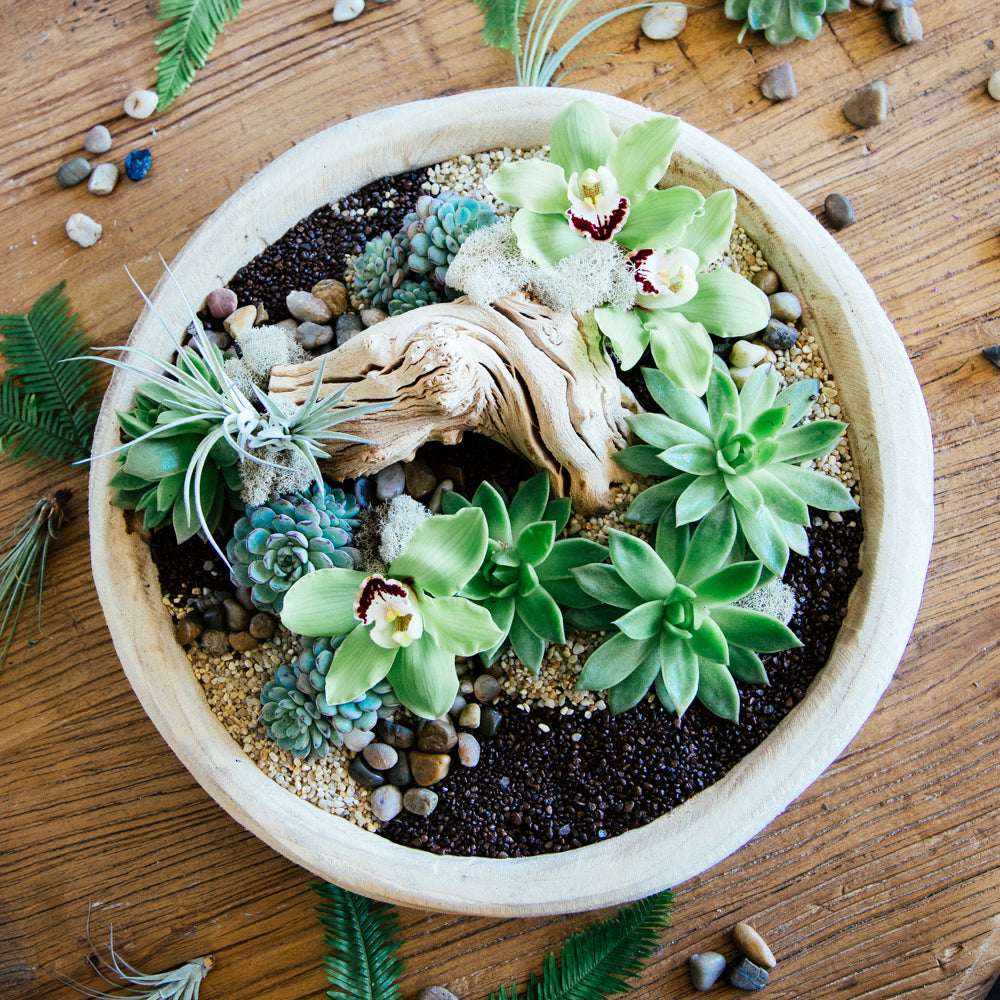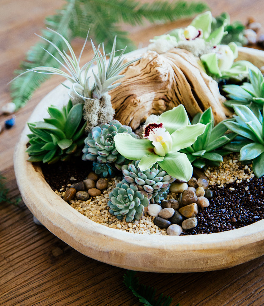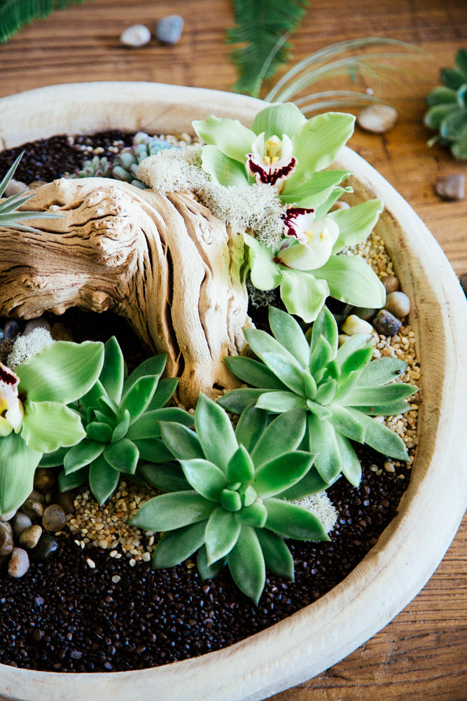 Orchid, Cymbidium Orchid, River Rocks, Succulent, Driftwood