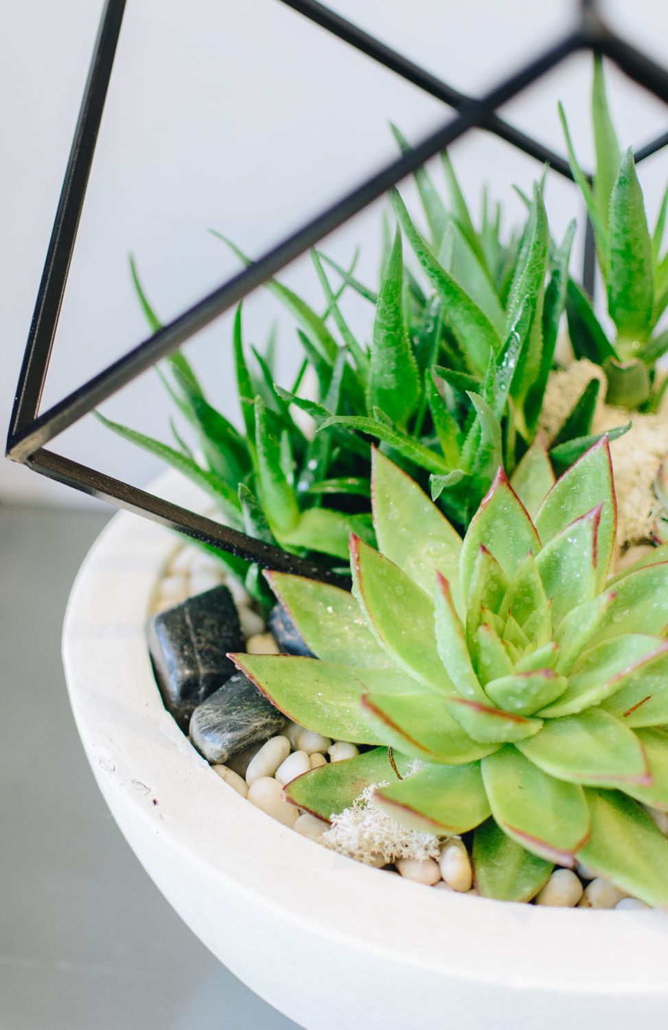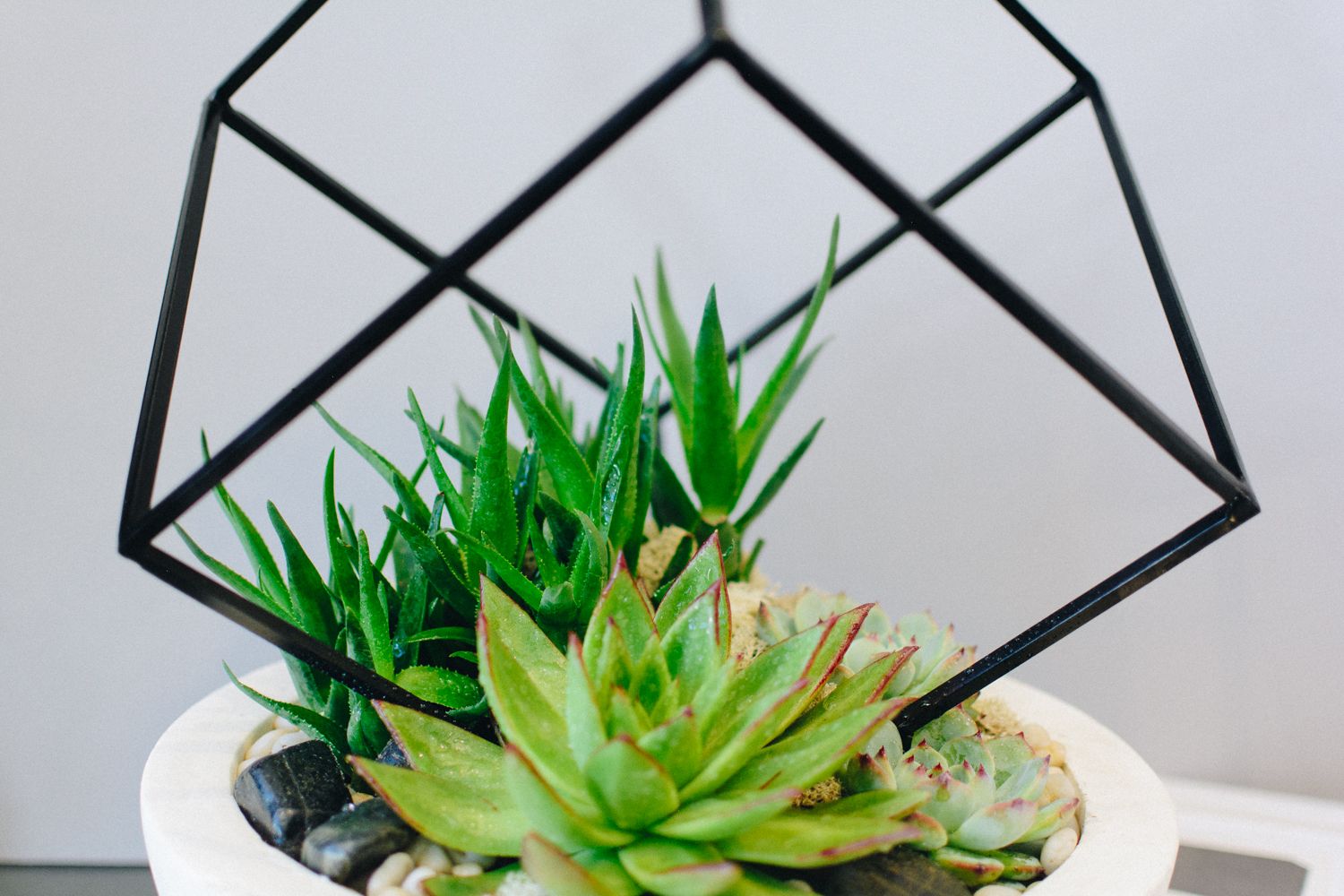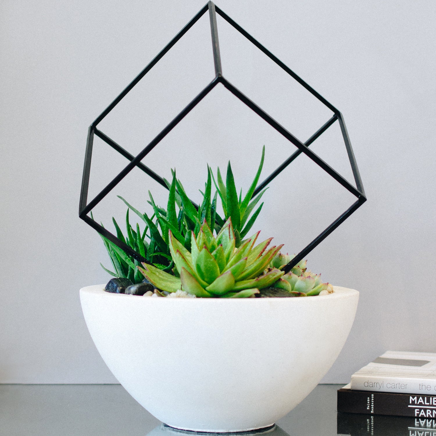Inspired by the geometrical faceting and twisting of the Poly International Plaza in Beijing, this modern design is a piece of art in itself. An array of hand selected succulents rest planted and thriving from within a 7" by 15" modern white ceramic vase, whilst a bold geometric cube rests gracefully atop. This contemporary arrangement stands at approximately 22" tall overall. Please note that variety of hand-selected succulents may vary.