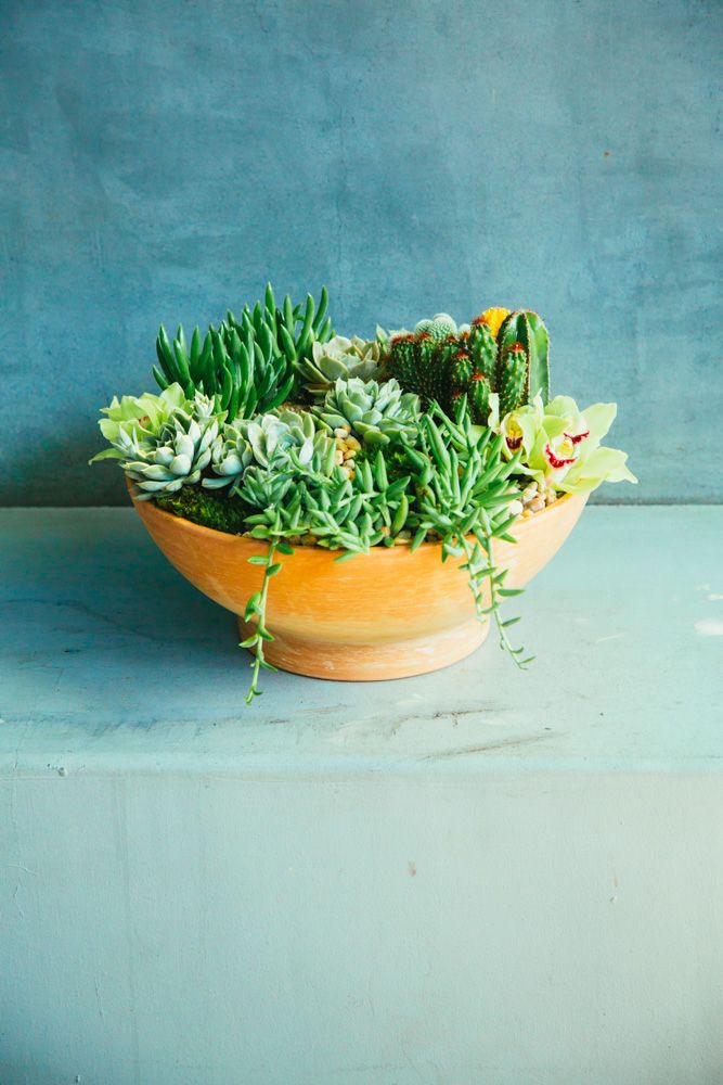 Take a lush escape to where a river meets the desert in this beautiful arrangement. 15 stunning succulents emitting emerald hues are placed atop a bed of river rocks, moss and sand. Adding the final touch, cymbidium orchids are placed throughout. Resting inside an orange 6” by 15” ceramic vase, overall this arrangement sands 8” tall. Please note that succulent variety may vary depending on seasonal availability.