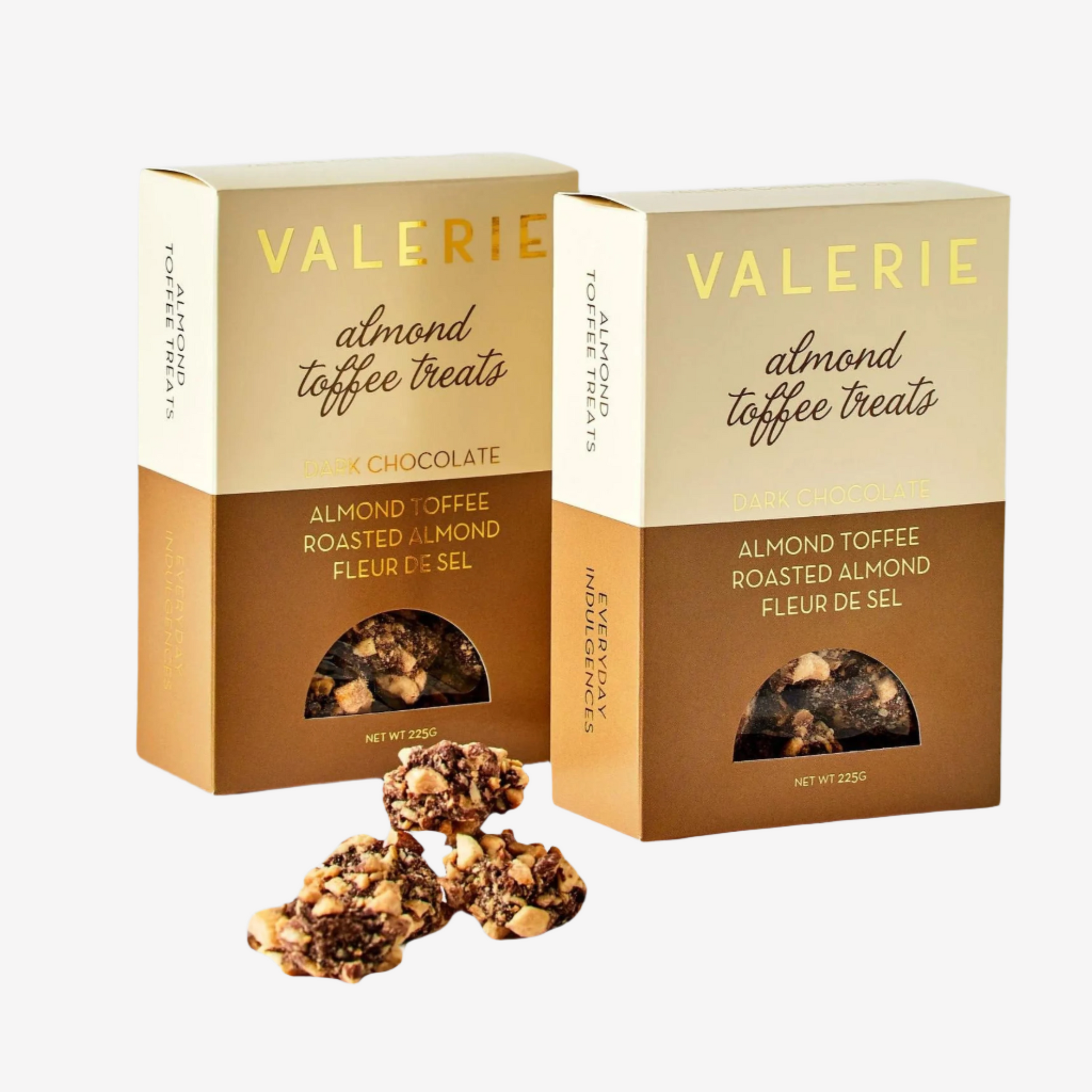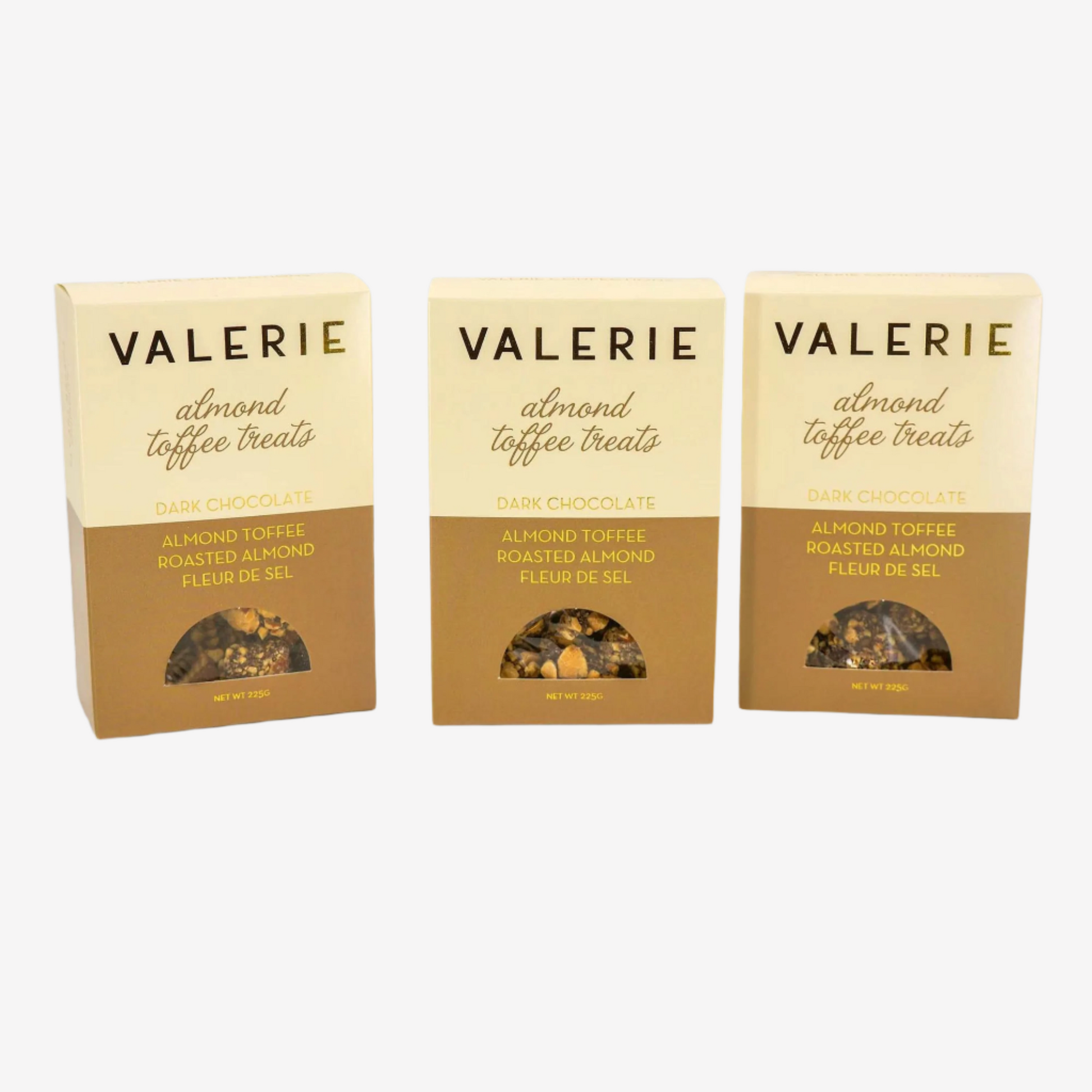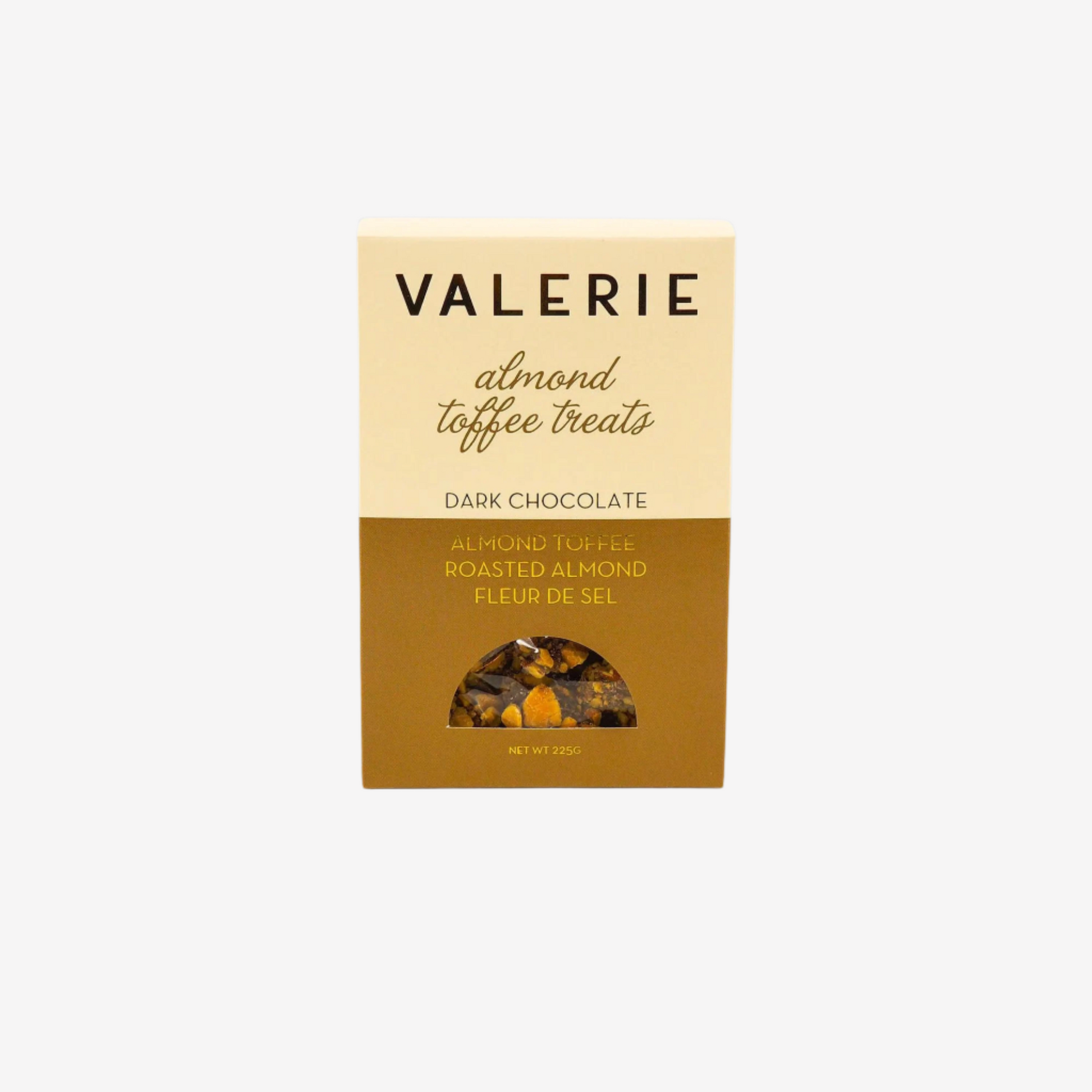 A reinterpretation of our signature Almond Fleur de Sel toffee. Each piece is hand dipped in bittersweet chocolate, then rolled in roasted almonds, and dusted with fleur de sel.